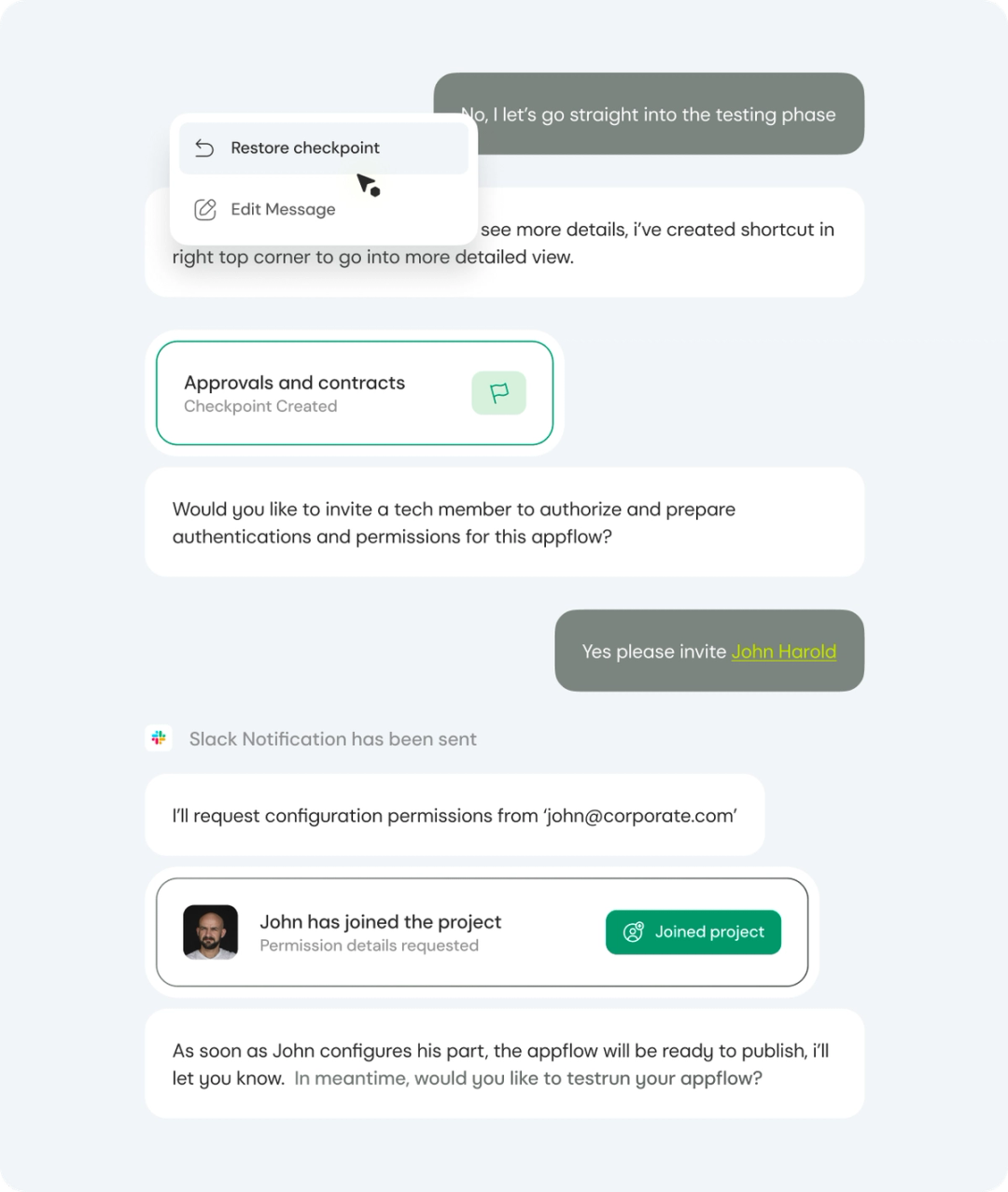 In this phase, we designed the behavioral layer of the product, defining how the system communicates state, progress, and intelligence. Motion was used to signal transitions, confirm actions, surface errors, and reinforce conversational flow.