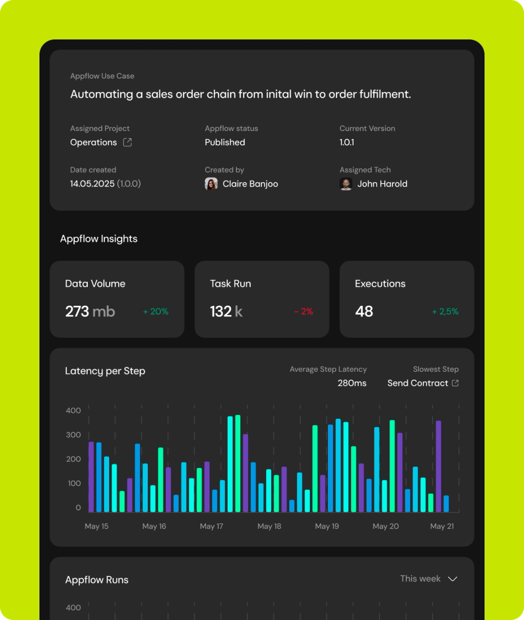 We moved to develop the visual language, refine brand elements within the interface, and built a scalable component architecture designed for complex automation environments. The focus was clarity under pressure — ensuring workflows, dashboards, and system states remained understandable even as operational complexity increased.
