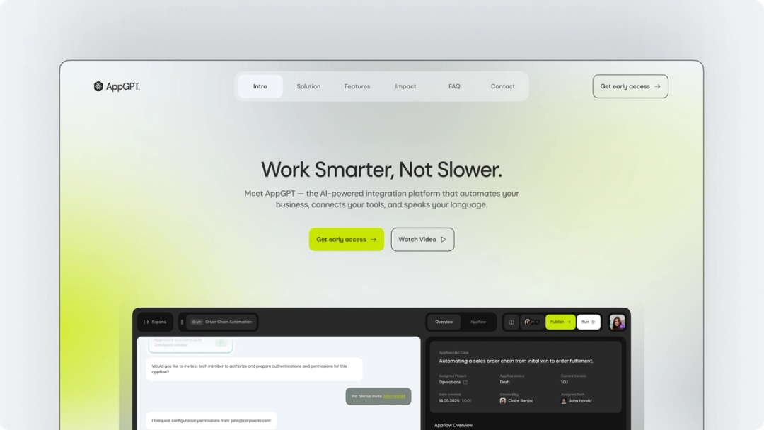 We partnered with Machine Two to define and design AppGPT, a next-generation AI-powered integration platform (iPaaS). Our role spanned product strategy, UX, and positioning; turning a complex technical vision into a clear, scalable, language-first automation platform.