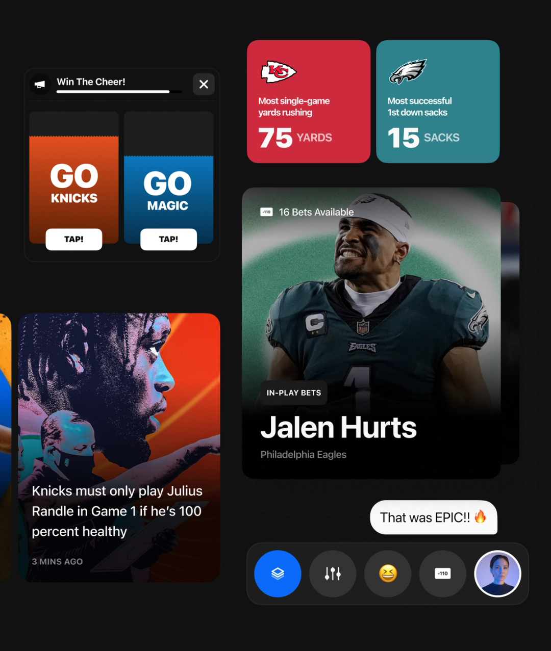 Our goal was to deliver a next-level sports engagement platform by enhancing the user experience across all devices, offering a hyper-personalized way to watch and interact with games. We aimed to seamlessly integrate gamification and sponsorships, making them part of a meaningful fan experience. Additionally, we built a flexible modular framework that allows our diverse features to be packaged as customizable offerings for various needs.
